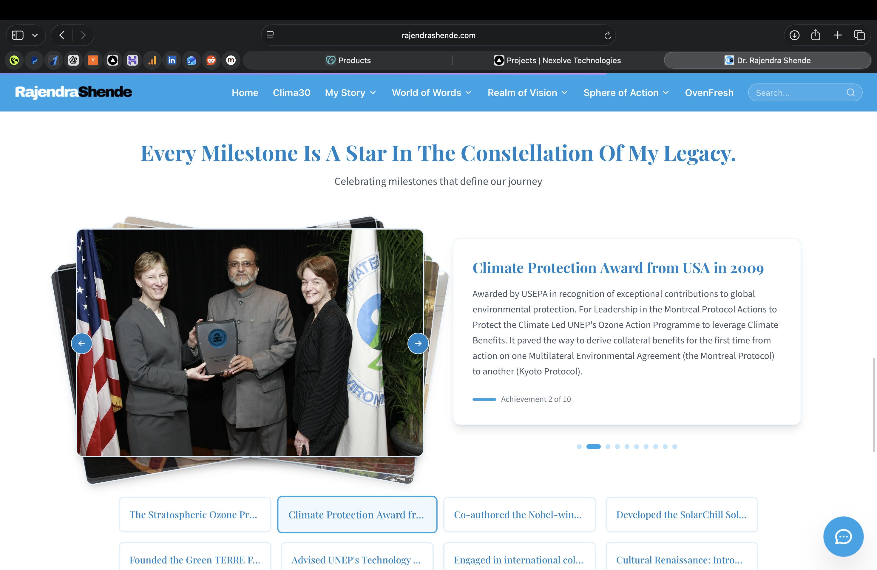 A performance-first personal platform Nexolve built for Dr. Rajendra Shende, IIT alumnus, former UNEP Division Director, co-author of the Nobel Peace Prize-winning IPCC 2007 report, and founder of the Green TERRE Foundation. The platform is a two-portal MERN application: a public-facing website for global media and Marathi-speaking communities, and a private admin portal for content management, both deployed on Hostinger VPS with Nginx. The Node.js + Express.js backend powers content management, contact routing via Nodemailer, and newsletter subscriptions stored in MongoDB. Google Analytics and Google Search Console ensure the platform reaches both international and domestic audiences organically.